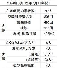 表は当院で行った訪問診療・往診の実績です。